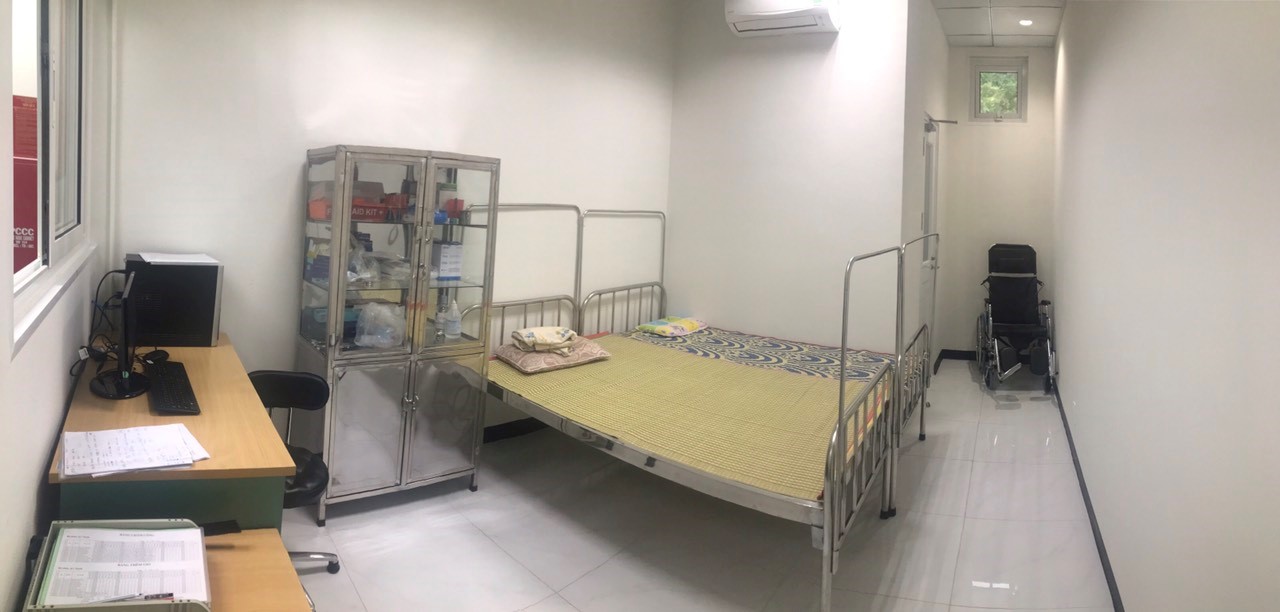 Nơi làm việc luôn được trang bị đầy đủ các phương tiện kỹ thuật, y tế thích hợp như: thuốc, bông băng, băng ca.